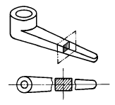 다음 입체도와 같은 형상을 그린 평면도에서의 표시 단면을 무엇이라 하는가?