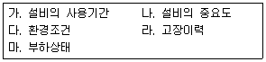 고장원인을 예방하기 위해 사전에 점검계획 수립 시 고려사항을 모두 고른 것은?