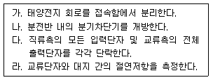 [보기]에서 태양광발전설비 인버터 출력회로의 절연저항 측정 순서를 옳게 연결한 것은?