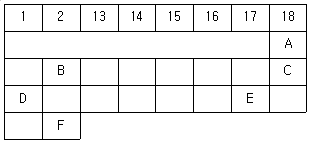 그림은 주기율표의 일부를 나타낸 것이다. 원소 A~F에 대한 설명으로 가장 옳은 것은? (단, A~F는 임의의 원소 기호이며, 원자 번호는 20 이하이다.)