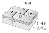 그림은 해령 주변의 판의 경계와 이동 방향을 모식도로 나타낸 것이다. 이에 대한 설명으로 가장 옳은 것은?