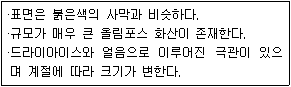 다음은 어느 행성의 탐사기록을 정리한 것이다. 이 탐사행성에 대한 설명으로 옳은 것은?