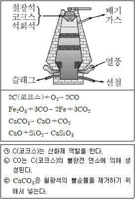 그림은 철의 제련 과정을 나타낸 것이다. 이에 대한 설명으로 옳은 것을 보기에서 모두 고르면?
