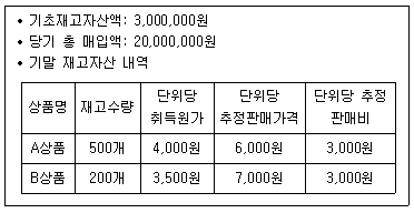 다음은 재고자산 평가를 종목별로 저가기준을 적용하고 있는 (주)한공의 2019년도 재고자산 관련 자료이다. 이를 토대로 계산한 매출원가는 얼마인가?