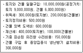 다음은 (주)한공의 2020년도 토지와 건물 관련 지출 내역이다. 다음 자료를 반영하여 계산한 2020년 말 토지와 건물의 장부금액은 얼마인가?(단, 감가상각비는 고려하지 않는다.)