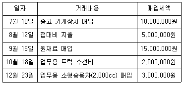 다음은 개인사업자인 한공실업(의류제조업)의 거래내용이다. 2021년 제2기 부가가치세 매출세액에서 공제받을 수 있는 매입세액은 얼마인가? (단, 필요한 세금계산서는 적법하게 수취하였다.)