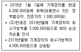 다음은 (주)한공의 유형자산 관련 거래 내용이다. 2019년에 인식해야 할 감가상각비와 손상차손환입은 얼마인가?