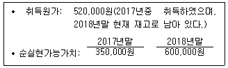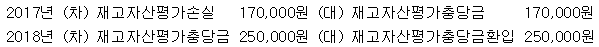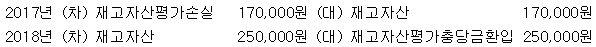 다음은 완구형 드론을 판매하는 (주)한공의 재고자산 거래내역이다. 2017년 및 2018년 기말 재고자산 평가에 대한 회계처리로 옳은 것은?