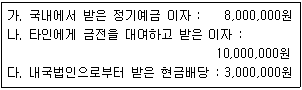다음 자료에 의하여 거주자 김한공 씨의 2020년도 종합과세 대상 금융소득금액을 계산하면 얼마인가?(단, 아래의 금액은 원천징수 전의 금액이며, 원천징수는 적절하게 이루어졌다.)