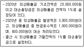 다음은 (주)한공의 외상매출금 및 대손 관련 자료이다. 2020년 손익계산서에 계상될 대손상각비는 얼마인가?