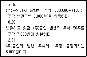 다음은 (주)한공의 단기매매증권 관련 자료이다. 당기 손익계산서에 계상될 단기매매증권평가손익은 얼마인가?