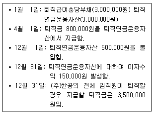 다음은 (주)한공의 2019년 퇴직급여충당부채와 관련된 거래내역이다. 이에 대한 회계처리와 관련된 설명으로 옳지 않은 것은?