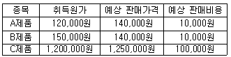 다음은 (주)한공의 2019년 12월 31일 현재 보유중인 재고자산 현황이다. 2019년도 손익계산서에 인식할 재고자산평가손실은 얼마인가? (단, 재고자산 평가는 종목별로 한다고 가정한다.)