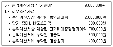 다음은 (주)한공의 제11기(2018.1.1.~2018.12.31.) 사업연도 법인세 신고를 위한 자료이다. (주)한공의 각사업연도 소득금액은 얼마인가?