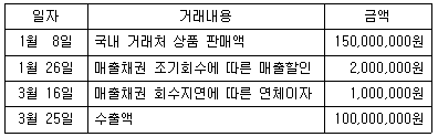 다음의 자료에 의하여 2017년 제1기 예정신고기간의 부가가치세 과세표준을 계산하면 얼마인가? 단, 제시된 금액에는 부가가치세가 포함되지 아니하였다.
