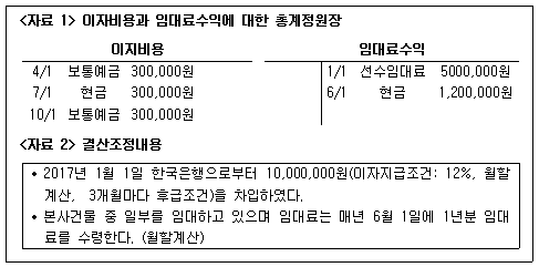 다음은 이자비용과 임대료수익에 대한 총계정원장과 관련 결산조정내용이다. 재무제표와 관련된 설명으로 옳지 않는 것은?