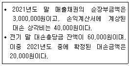 다음 자료를 토대로 (주)한공의 2021년도 재무상태표에 보고될 대손충당금 차감 전 매출채권금액을 계산하면 얼마인가?