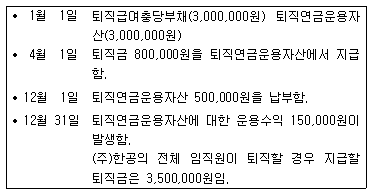 다음은 (주)한공의 2021년 퇴직급여충당부채와 관련된 내역이다. 이 내역의 회계처리와 관련된 설명으로 옳지 않은 것은?