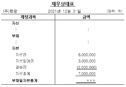 (주)한공은 결손금 2,000,000원을 보전하기 위하여 2021년 12월 31일 200주(액면 금액 10,000원)의 무상감자를 실시할 예정이다. 무상감자 전 자본 내역이 다음과 같을 때 무상감자 후 자본(총계)은 얼마인가?