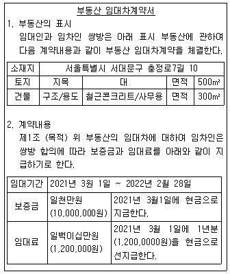 (주)한공은 본사 건물의 일부를 다음과 같은 조건으로 임대하였다.