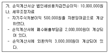 다음은 제조업을 영위하는 (주)한공의 제17기 사업연도(2017.1.1.∼2017.12.31.)의 법인세 신고를 위한 자료이다. 법인세법상 각 사업연도 소득금액은 얼마인가?