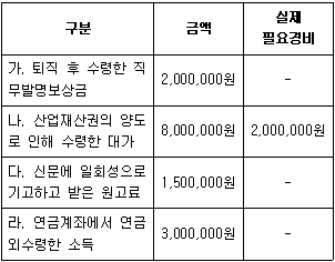 다음은 거주자 김한공 씨의 2021년 소득 내역 일부이다. 이를 토대로 종합과세되는 기타소득금액을 계산하면 얼마인가?