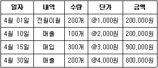 다음은 (주)한공의 4월 중 상품 거래내역이다. 이동평균법에 의한 4월의 매출원가로 옳은 것은? (단, 제시된 자료 외에는 고려하지 않는다.)