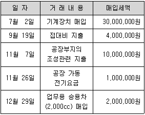 다음은 개인사업자인 한공기업(가구제조업)의 거래내용이다. 2020년 제2기 부가가치세 매출세액에서 공제받을 수 있는 매입세액은 얼마인가? (단, 필요한 세금계산서는 적법하게 수취하였다.)