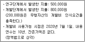 다음은 (주)한공의 연구개발활동 관련 자료이다. 2020년 손익계산서상 비용으로 계상하여야 할 금액은 얼마인가?
