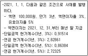다음 자료를 토대로 (주)한공의 사채 발행금액을 계산하면 얼마인가? (계산결과는 소수 첫째자리에서 반올림한다.)