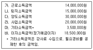 다음은 거주자 한공회 씨의 2018년도 소득자료이다. 이 자료를 이용하여 종합소득세 확정신고시 신고해야하는 종합소득금액은?