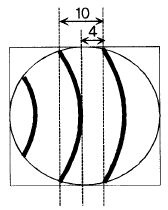 반사형 간섭계를 사용하여 거울의 형상을 측정할 경우 다음과 같은 간섭무늬를 얻었다면 거울의 형상오차의 크기는? (단, 광원의 파장은 0.6㎛)