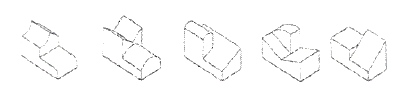 등각투상도 중에서 평면도(Top View)가 같은 형태로 나타나는 것은 모두 몇 개인가?