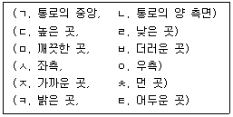 안전검측의 원칙상 항목별(ㄱ~ㅌ) 검측 시 ( )에서 우선으로 중점 검측할 대상을 옳게 선택한 것은?