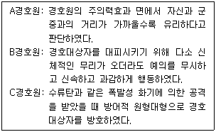 경호임무수행 중 우발상황 발생 시 각 경호원의 대응으로 옳은 것을 모두 고른 것은?