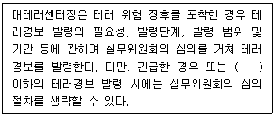 국민보호와 공공안전을 위한 테러방지법령상 ( )에 들어갈 테러경보의 단계는?