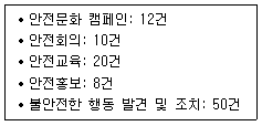 A사업장에서 전년도에 총 10건의 재해가 발생하여 안전관리 부서의 주관으로 10개월 동안 다음과 같은 안전활동을 벌였다. 이 기간 동안 매일 평균 1,000명의 근로자가 일 8시간, 월 25일 근무하였다면 안전활동률은?