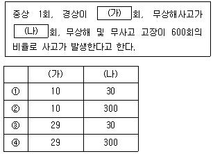 버드(F. Bird Jr.)의 재해발생비율에서 (가), (나)에 들어갈 숫자를 바르게 연결한 것은?