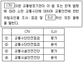 「교통안전법」상 용어 정의로서 (가), (나)에 들어갈 내용을 바르게 연결한 것은?