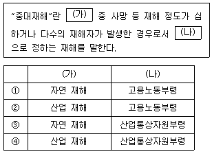「산업안전보건법」상 용어 정의로서 (가), (나)에 들어갈 내용을 바르게 연결한 것은?