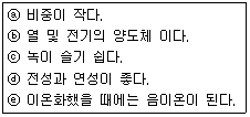 보기 의 특성 중 금속의 일반적인 성질에 해당하는 것을 모두 고른 것은?
