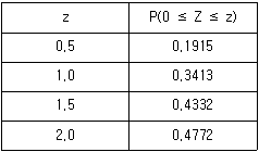 확률변수 X가 이항분포 B(150, 3/5) 을 따를 때, 다음 표준정규 분포표를 이용하여 확률 P(81 ≤ X ≤ 96) 을 구하면?