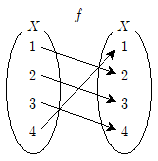 집합 X={1,2,3,4}에 대하여 함수 f:X→X가 다음 그림과 같을 때, (fㆍf)(1)+(f-1ㆍf-1)(2)의 값은?