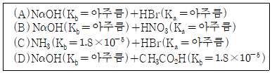 화합물 한 쌍을 같은 몰수로 혼합하는 다음 4가지 경우 중 염기성 용액이 되는 경우는 모두 몇 가지인가?