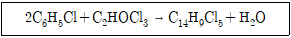 살충제인 DDT(C14H9Cl5)의 합성반응이 아래와 같다. 225g의 클로로벤젠(C6H5Cl)과 157.5g의 클로랄(C2HOCl3)을 반응시켜 DDT를 합성할 때에 대한 다음 설명 중 틀린 것은? (단, 클로로벤젠: 112.5g/mol, 클로랄: 147.5g/mol, DDT: 354.5g/mol이다.)