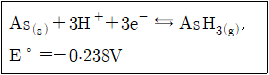 pH=3.00이고 P(AsH3)=1.00mbar 일 때 아래의 반쪽전지전위(V)는?
