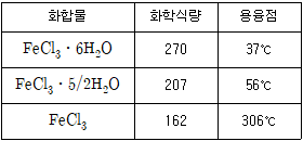 FeCl3ㆍ6H2O 25.0mg을 0℃부터 340℃까지 가열하였을 때 얻은 열분해곡선(Thermogram)을 예측하고자 한다. 100℃ 와 320℃에서 시료의 질량으로 가장 타당한 것은? (단, FeCl3의 열적 특성은 아래 표와 같다.)