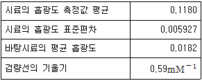 카페인 시료의 농도를 분광광도법으로 분석하여 아래의 표와 같은 데이터를 얻었을 때, 이 분광광도계의 최소 검출 가능 농도(mM)는?