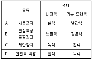 실험실 내의 모든 위험물질은 안전보건표지를 설치·부착하여야 하며, 표지의 색채는 산업안전보건법령상 규정되어 있다. 다음 중 안전보건표지의 분류와 관련 색채의 연결이 옳은 것을 모두 고른 것은?