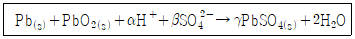 납축전지의 전체 반응식이 아래와 같을 때, 완결된 반응식의 PbSO4(s) 계수(γ)는?